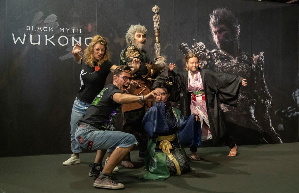 2024年8月22日,人们正在2024年科隆国际逛戏展《黑:悟空》摄影区摄影。记者 张帆 摄。